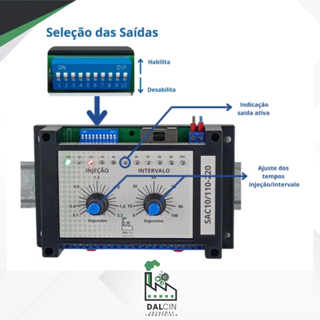- Através das chaves é possível habilitar a quantidade de saídas desejada zero, uma, duas, três ... até 10, em qualquer ordem,