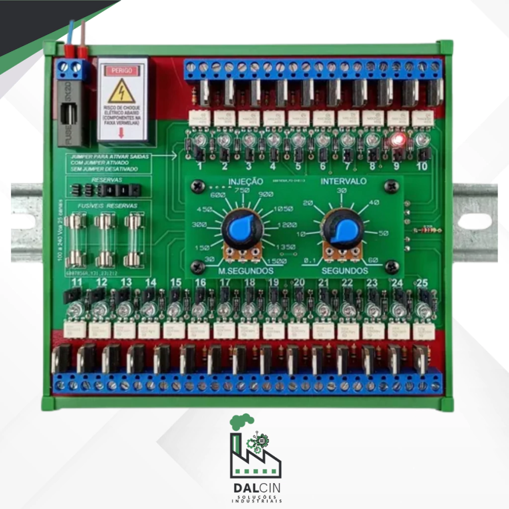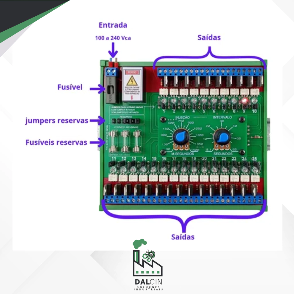 - Através de jumpers é possível habilitar a quantidade de saídas desejada zero, uma, duas, três ... até 25.